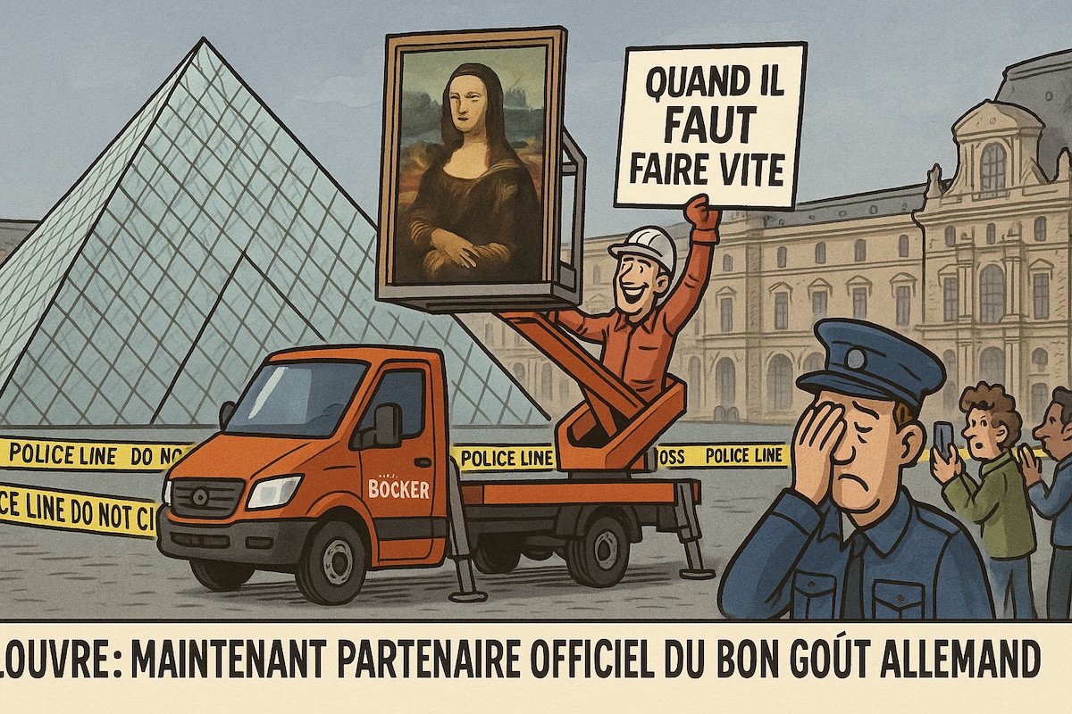 Quelques heures à peine après le cambriolage du Louvre, alors que la France encaisse le choc, le constructeur allemand du monte-charge utilisé pour le casse publie fièrement une photo de son engin devant le musée. (source : National post)