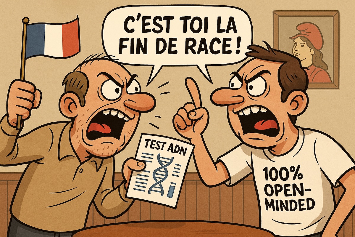 Et si t’as le malheur de n’avoir que des ancêtres de Corrèze, t’es suspect. On te regarde comme si t’étais sorti tout droit d’un musée ethnologique sponsorisé par CNews.