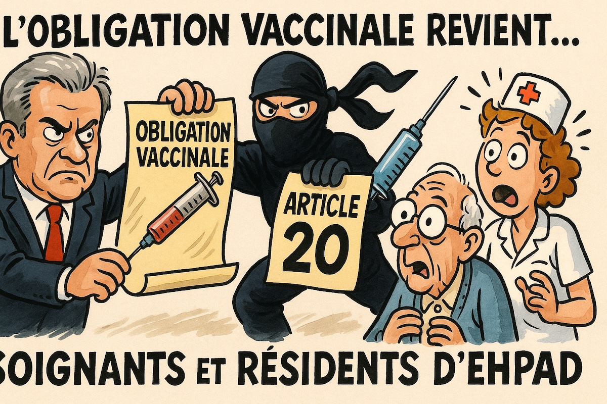 Mais voilà que l’article 20, cette petite ligne sournoise, silencieuse et très commode, refait surface dans le texte transmis au Sénat. (source : Le monde) Oui, oui : l’obligation vaccinale pour les soignants et les résidents d’Ehpad revient comme si personne n’avait rien vu. Magie ou machination ? Chez Madame-Raleuse.com, on appelle ça par son nom : un retour en douce.