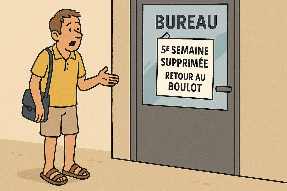 Ah… la cinquième semaine de congés payés. Ce doux mirage d’équilibre entre burn-out et survie émotionnelle. Ce Graal du salarié rincé qu’on nous avait accordé dans un moment d’égarement social. Eh bien, chers amis, préparez-vous à lui dire adieu. Car en 2025, pendant que certains nous vendent la « valeur travail », d’autres s’activent discrètement à sabrer ce vestige d’un monde où l’on croyait encore que la vie ne se résumait pas à « métro-boulot-prix qui flambent ».