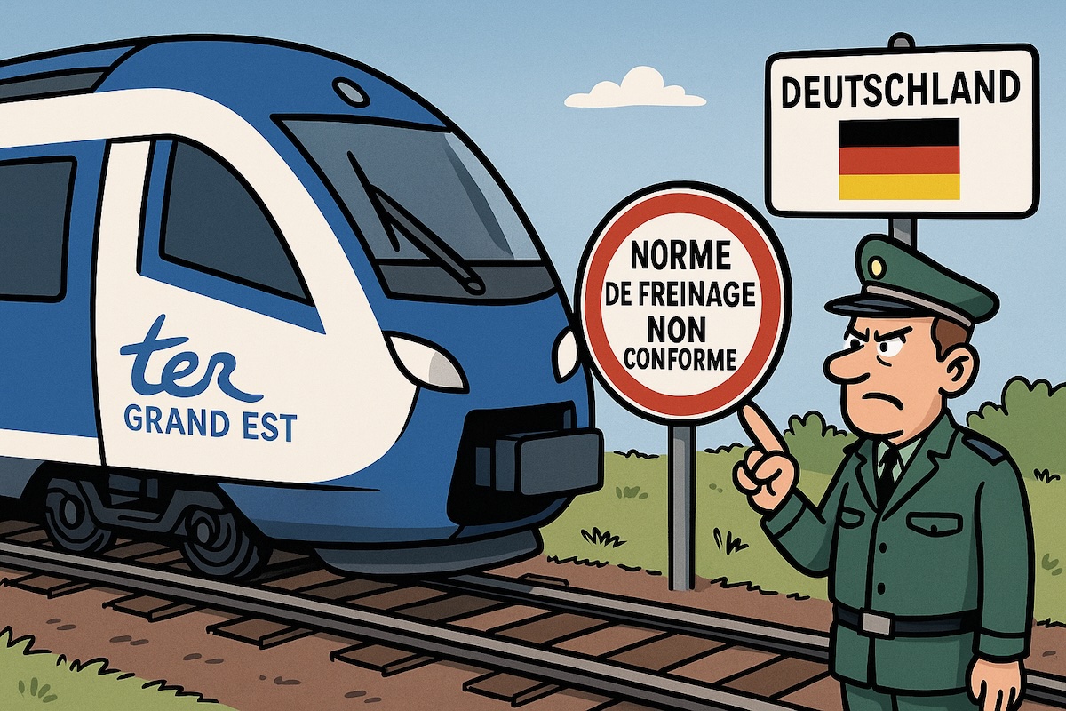 Dernier épisode : les 30 nouveaux TER transfrontaliers du Grand Est, flambant neufs, achetés 400 millions d’euros, qui… ne peuvent pas rouler en Allemagne. (source : DNA)