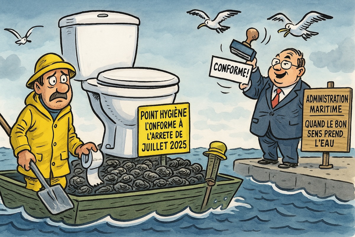 Le coût, évidemment, est abyssal. Les ostréiculteurs — déjà étranglés par les charges, les marées administratives et les caprices climatiques — devront désormais transformer leur barge en camping-car flottant. Et pour les plus petits bateaux ? Eh bien… débrouillez-vous. Peut-être un pot de chambre estampillé “conforme à l’arrêté de juillet 2025” ?