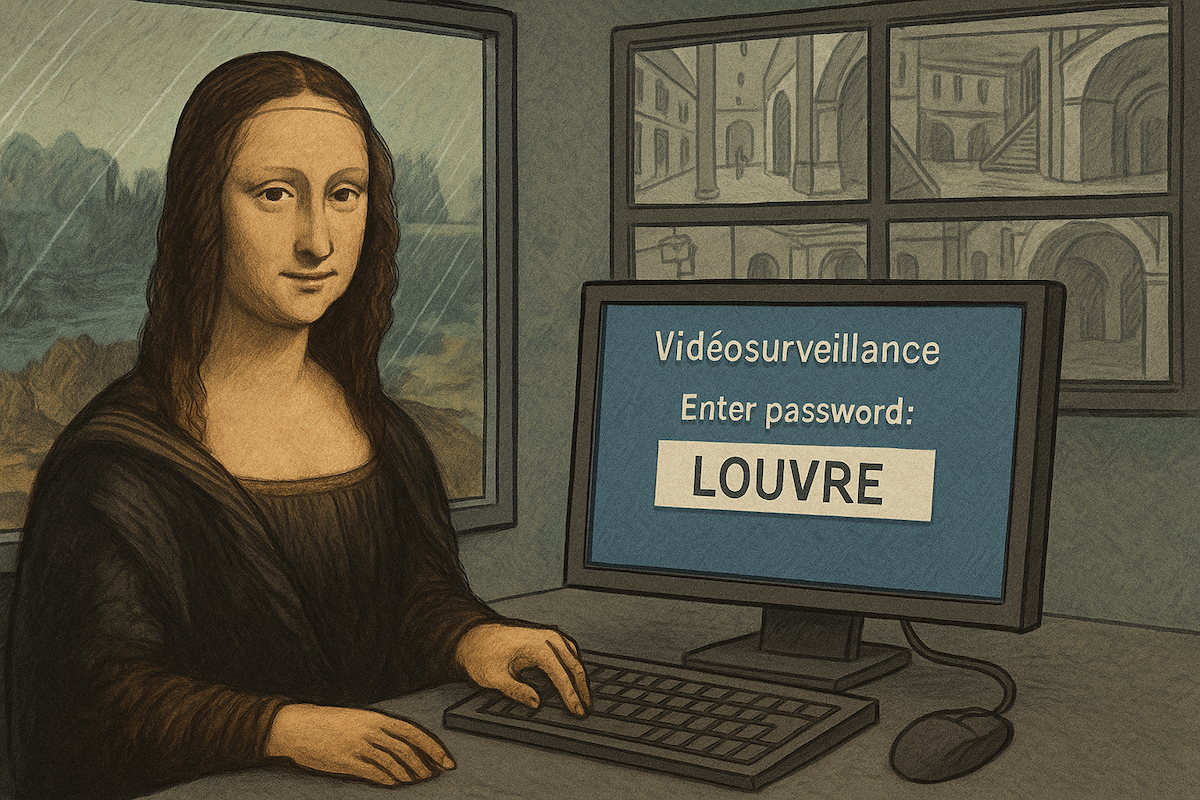 Oui, c’est vrai. Pas une blague, pas une théorie du complot : le mot de passe pour accéder aux serveurs de vidéosurveillance du Louvre était littéralement… “LOUVRE”. (source : Midi Libre)